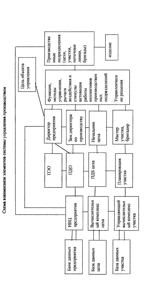Взаимосвязь элементов системы управления производством представлена на рис.