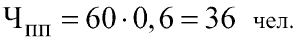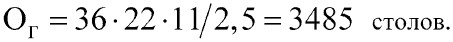 Принимая: Чпп = 36 чел.; t = 2,5 чел. дня/стол; ДМ = 22 дня; РМ = 11 мес., по формуле (1) (разд. 1), получим: