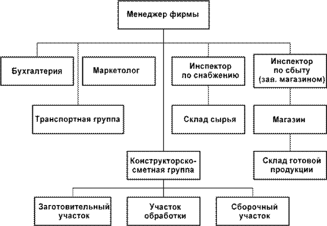 Фирма «СТОЛЫ» небольшая, однако выполнять разнообразные управленческие функции одному руководителю сложно, поэтому целесообразно принять линейно-функциональную схему управления. Тогда, с учетом технологической схемы, будем иметь (рис. П2):