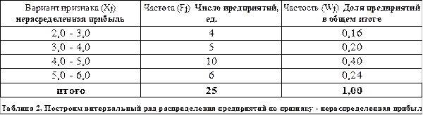 m=6 (количество предприятий, имеющих нераспределенную прибыль 5,0 млн. руб. и более (таблица 2))