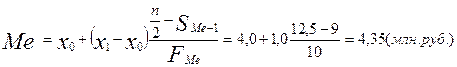 Вывод. Таким образом, приблизительно половина предприятий имеет нераспределенную прибыль меньше 4,35 млн. руб., а другая – больше 4,35 млн. руб.