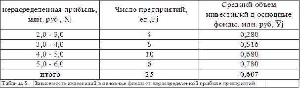 Вывод. На основании данных построенной аналитической группировки можно сказать, что с увеличением нераспределенной прибыли, средний объем инвестиций в основные фонды предприятий также увеличивается, что свидетельствует о наличии прямой связи между указанными признаками.