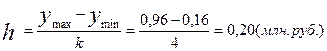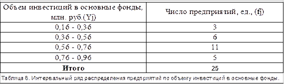 Используя данные таблицы 1 и таблицы 2, найдем наибольшее и наименьшее значение инвестиций в основные фонды предприятия. Построим интервальный ряд распределения, где Y - инвестиции в основные фонды. Для этого найдем шаг интервала:
