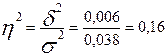 межгрупповой дисперсии в общей дисперсии, характеризует силу влияния факторного