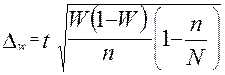 Формула расчета предельной ошибки выборки для доли единиц, обладающих альтернативной изменчивостью признака: