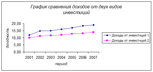 Построим график сравнения доходов, полученных от акций, вложенных в разные инвестиционные проекты.
