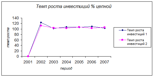 Исходя из полученных данных, можно сделать прогноз на следующие два года. Учитывая, что средний прирост составил 2,23 %, это в среднем 0,4 % в год, а шестом году инвестиции будут составлять приблизительно 1739,6 млн. руб., абсолютный прирост составит 65,6 млн. руб. На седьмой год инвестиции составят приблизительно 1814,7 млн. руб., абсолютный прирост – 75,1 млн. руб.