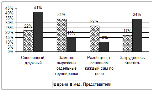 Проведенное исследование позволило сформулировать и осветить основные функции в работе медицинских представителей, современный медицинский рынок региона. Анкетирование подтвердило выдвинутую гипотезу, что расширение компании «Джонсон и Джонсон» происходит более медленными темпами из-за незнания врачами специфики работы медицинских представителей. Анкетирование медицинских представителей позволило уточнить основные моменты, которые привлекают их к данной работе: удовлетворение материальным состоянием, интересная работа, сплоченный коллектив.