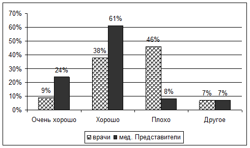 В качестве гипотезы исследования нами выдвинуто предположение, что знания врачей о специфике работы медицинских представителей недостаточны, следовательно, это не может способствовать росту количества медицинских представителей в регионе. А также выявление наиболее привлекательных сторон этой работы (как бы «взгляд изнутри») – наоборот - может способствовать повышению количества медицинских представителей.