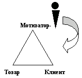Мотиватор - посредник, ему надо «встретить» Клиента с товаром (см. схему 4), что он и делает в этой ситуации напрямую, не вставая ни на защиту интересов товара, ни на защиту интересов Клиента.