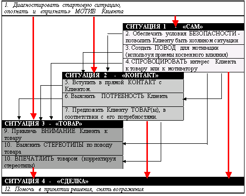 Если «нет прилавка» (работа разного рода агентов), если речь идет о продаже сложных услуг, если Клиент находится на своей территории (а не в магазине продавца) - то сомнительно представить себе эффективного мотиватора, начинающего свою работу с ситуации 3.