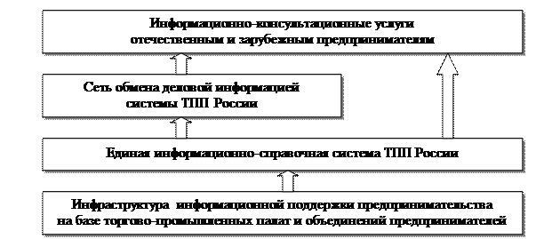 Основными составляющими инфраструктуры продвижения услуг системы ТПП России для отечественных и зарубежных предпринимателей являются: