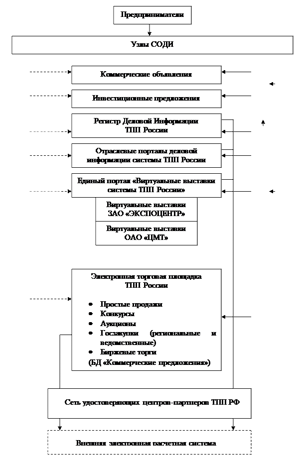При этом первоочередным шагом является организация узлов СОДИ на базе сайтов организаций, входящих в систему ТПП России, а также имеющих подписанные с Палатой соглашения, регламентирующие обмен деловой информацией.