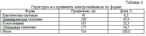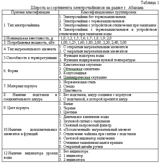 1. Выявить структуру товарного предложения электрочайников с учетом наиболее существенных товароведных характеристик приборов и современных тенденций формирования ассортимента товаров этого вида на мировом рынке.