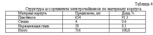 Другой пример недостаточно рационального формирования ассортимента – электрочайники из стекла реализуют только 4 предприятия.