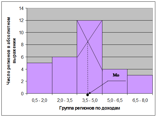 2. Графическим методом и путем расчётов определить значения моды и медианы полученного ряда распределения.