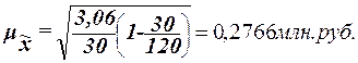 Вывод. С вероятностью 0,683 можно утверждать, что в генеральной совокупности регионов доля регионов с доходом бюджета 5 млн. руб. и выше будет находиться в пределах от 16,6% до 30,0%.