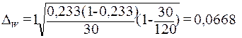 Определение по формуле (18) доверительного интервала генеральной доли: