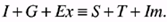 Поскольку в показателе чистого экспорта присутствует и инъекция — экспорт, представляющий собой расходы (спрос) иностранного сектора на продукцию данной страны, и поэтому увеличивающий поток расходов и доходов, и изъятие — импорт, являющийся утечкой части совокупного дохода страны (домохозяйств) в иностранный сектор и, следовательно, сокращающий внутренние расходы и соответственно доходы, то для четырехсекторной модели экономики формула тождества инъекций и изъятий имеет вид