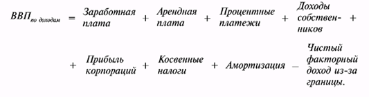 При этом методе подсчета ВВП рассматривается как сумма доходов собственников экономических ресурсов (домохозяйств), т.е. как сумма доходов от национальных и иностранных факторов.