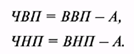 Для подсчета чистого внутреннего продукта (ЧВП) и чистого национального продукта (ЧНП), которые отражают производственный потенциал экономики, так как они включают только чистые инвестиции (Inet), необходимо вычесть из ВВП и ВНП стоимость потребленного капитала, т.е. амортизацию (А):