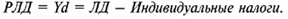 Располагаемый личный доход (РЛД) — это доход, используемый, т.е. находящийся в распоряжении домохозяйств. Он меньше личного дохода на величину индивидуальных налогов, которые должны заплатить собственники экономических ресурсов в виде прямых, прежде всего подоходных, налогов: