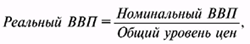 Номинальный ВВП (YN) — это ВВП, рассчитанный в текущих ценах, т.е. в ценах данного года. На величину номинального ВВП влияют два фактора: изменение реального (физического) объема производства и изменение уровня цен. Чтобы измерить реальный ВВП, необходимо "очистить" номинальный ВВП от воздействия на него изменения уровня цен.