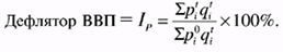 Дефлятор ВВП подсчитывается на основе стоимости рыночной корзины всех конечных товаров и услуг, произведенных в экономике в течение года. Статистически дефлятор ВВП выступает как индекс Пааше (IР) — индекс с весами (объемами) текущего года: