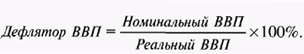 Таким образом, для получения реального ВВП (YR) номинальный ВВП (YN) следует разделить на общий уровень цен (Р), который за период от базового до текущего года может как вырасти (Р > 1), так и понизиться (Р < 1). В первом случае реальный ВВП оказывается меньше номинального, т.е. проводится операция дефлирования — снижения уровня цен текущего года до уровня цен базового года. Во втором случае реальный ВВП будет больше номинального, что соответствует операции инфлирования — повышения уровня цен текущего года до уровня цен базового года.