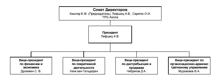 Высшим органом управления Обществом является Общее собрание участников общества. Единоличным исполнительным органом Общества является Генеральный (Дрожжин Сергей Владимирович) (см. Приложение 1).