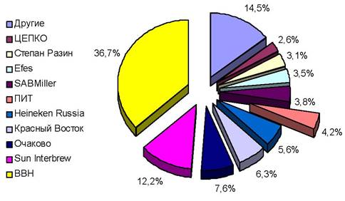 • Цель Группы компаний ПИТ - занять к 2005 г. 10% российского пивного рынка и в течение следующих пяти лет стать третьей по объемам продаж и лидером качества в производстве пива в России.(стр. 6)