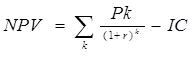Чистый приведенный эффект (NPV) соответственно рассчитываются по формулам: