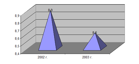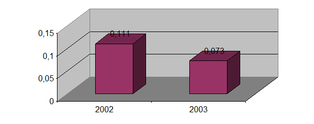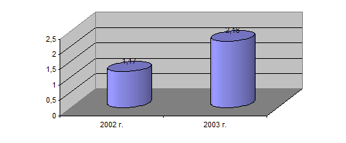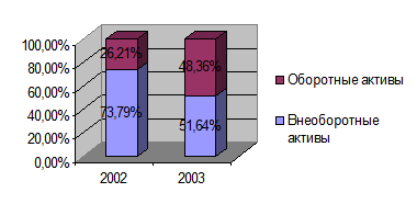 Если проанализировать какую часть составляют больше внеоборотные активы или оборотные активы, то можно заметить, что в 2001 году оборотные и внеоборотные активы практически совпадают, в 2002 году внеоборотные активы больше оборотных активов, но незначительно если сравнить эту цифру с 2003 годом, так как в 2003 году внеоборотные активы превышают оборотные практически в 3 раза.