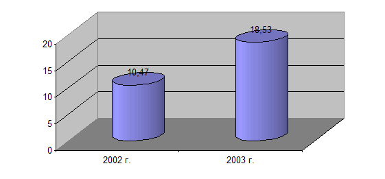 Рассчитаем потребность в активах для ОАО «Челябспецтранс» по таблице 1 построим диаграмму (рис. 1), на которой показаны изменения активов в период с 2002 по 2003 год.