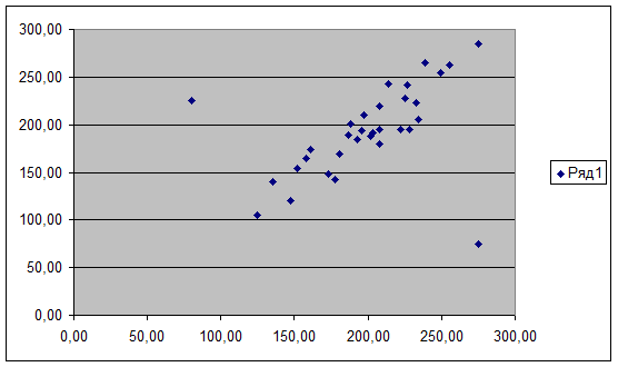 Это уравнение регрессии и его график приведены на отдельной диаграмме рассеяния 2.2 Рабочего файла.