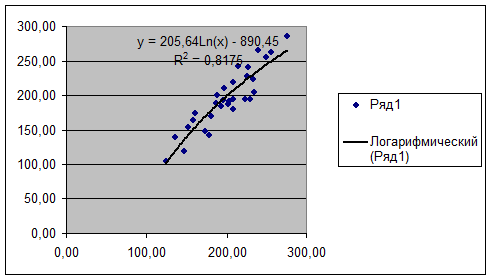 Задача 5. Нахождение наиболее адекватного уравнения регрессии с помощью средств инструмента Мастер диаграмм. Построение для этого уравнения теоретической линии регрессии.