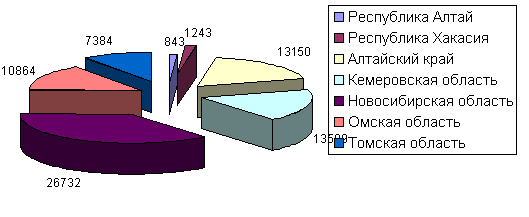 Рис. 2 - Количество организаций малого предпринимательства по регионам Сибирского федерального округа на конец 2004 года (единиц)