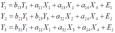 Решение задачи 2а. В данной СФМ три экзогенных (Х1, Х2, Х3) и три эндогенных (Y1, Y2,Y3) переменных. Составим системы одновременных уравнений: