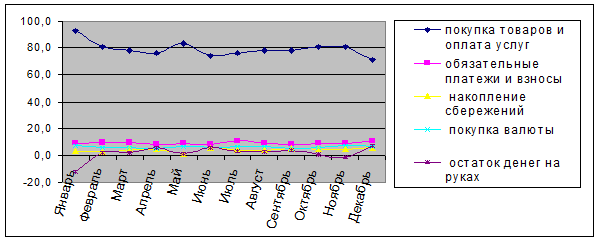 Рис. 3. Структура использования денежных доходов за 2001 г.