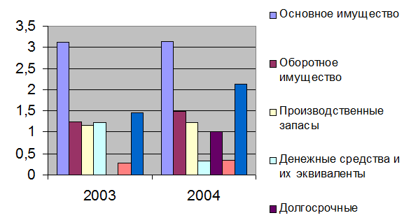 В ходе проведенного анализа аналитического баланса предприятия, можно сделать вывод что оборотные активы возросли на 57468841 руб. и составляют 176336133 руб. в 2004 г. Удельный вес незначительно уменьшился с 46,2 % до 35,5 %. Снижение удельного веса оборотных активов оценивается отрицательно, так как они становится менее ликвидны и их скорость оборота ниже, чем у внеоборотных активов.