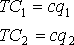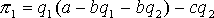 Функции затрат - прямые пропорциональности от выпуска каждой из фирм: , а , для удобства предположим что
