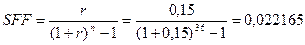 Далее рассчитываем сумму ежемесячного депозита, используя коэффициент фонда возмещения (SFF), при этом количество месяцев n = 36 (12*3) и ежемесячная ставка депозита r = 0,0125 (0,15/12).