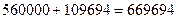 560 000 руб. + сумма процентов за ссуду 109694 руб.).
