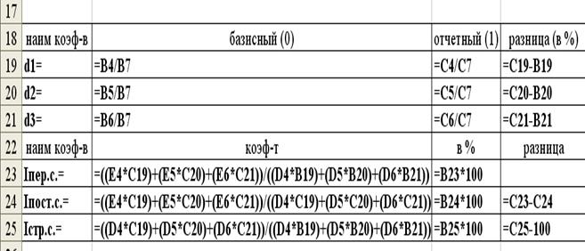 3. Найдем индексы удельного расхода переменного и постоянного состава и индекс структурных сдвигов, по формулам: