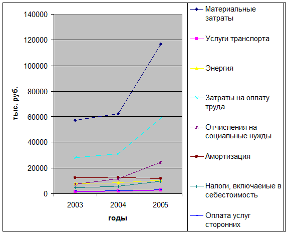 6) себестоимость услуг выросла с 156900 до 160539 руб. в 2004 году и с 150639 до 168383 руб. в 2005 году по сравнению с 2004 годом