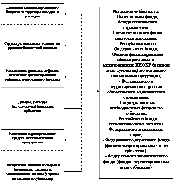 - показатели исполнения бюджетов федерального и территориальных дорожных фондов, экологических (по субъектам РФ), Российского фонда технологического развития Минпромнауки, фондов финансирования общеотраслевых и межотраслевых НИОКР по освоению новых видов продукции (по субъектам);