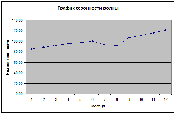 На основе полученных данных построим график сезонности волны.