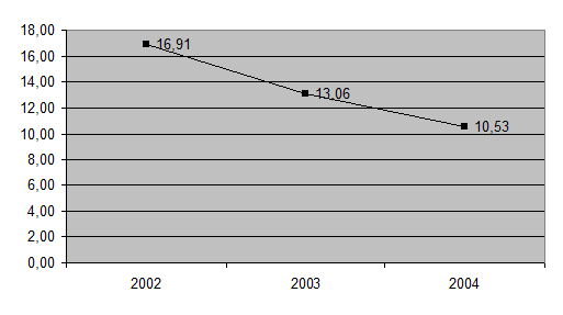 закономерность прослеживается как в сравнении показателей за 2003 и 2004 годы,