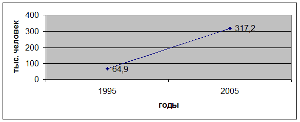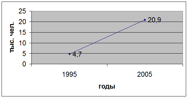 Рис. 2. Динамика численности допризывников, освобожденных от службы в связи с наркоманией с 1995 по 2005 год[7]