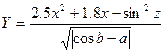 Y=(2.5*X^2+1.8*X-(SIN(Z*PI/180))^2)/(SQR(ABS(COS(B*PI/180)-A)))
